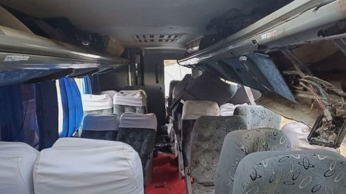 The bus was carrying about 30 passengers, police said. (Associated Press)