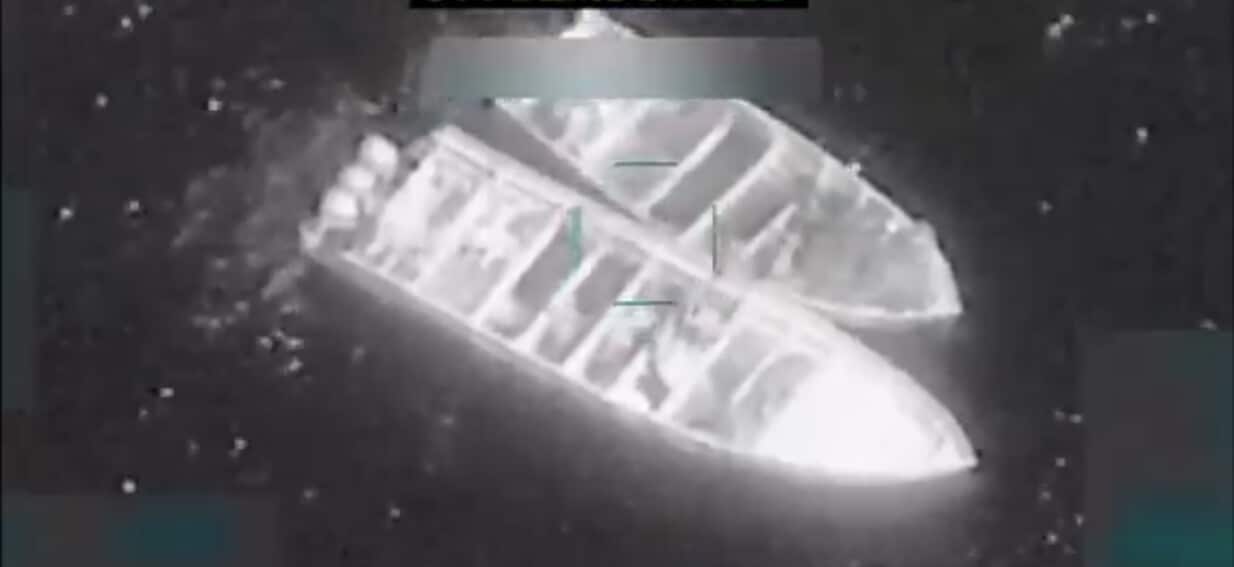 Another part of the video shows a vessel moving in the water, which then explodes.