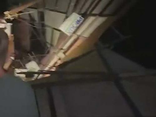 The building was flattened with people still inside but somehow nobody was seriously injured.