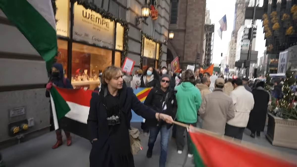 Protesters were seen waving Palestinian flags down Fifth Avenue as some demonstrators stormed inside Zara