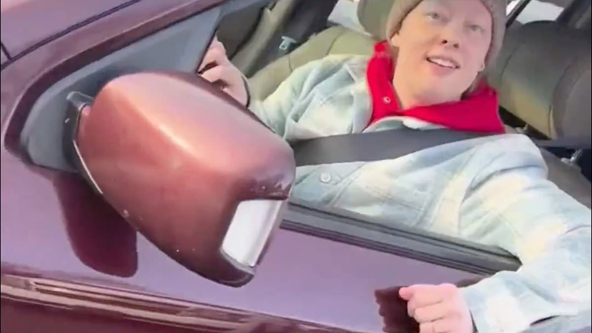 Video shows a red SUV driven by Renee sitting perpendicular and blocking part of the road. She is pressing the horn repeatedly.