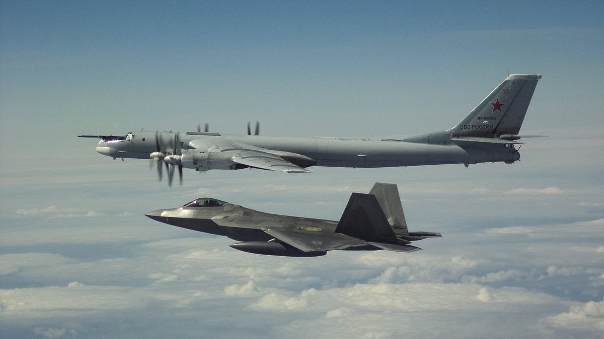 Two pairs of F-22 fighter jets, each with an E-3 intercepted Tu-95 bombers Su-35 fighter jets entering the Alaskan ADIZ in 2019