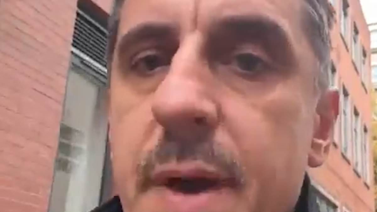 Gary Neville (above) has sparked a furious online backlash after his comments on the Manchester synagogue attack descended into a rant about ‘angry middle-aged white men’ dividing Britain by raising Union flags