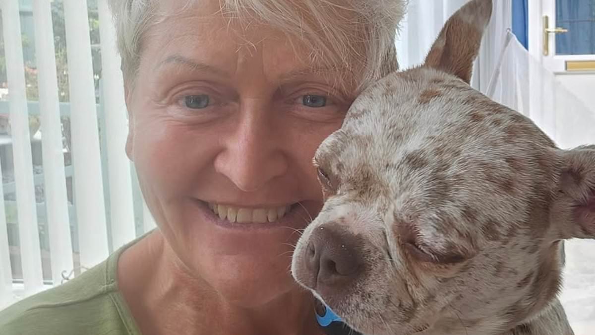 Sarah Barker, 62, is seen with the dog they adopted from Ms Slaney-Summers