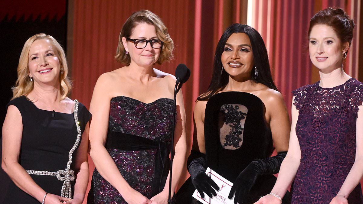 Angela Kinsey, Jenna, Mindyand Ellie Kemper took to the stage at Los Angeles’ Shrine Auditorium and Expo Hall to present the award for outstanding ensemble in a comedy series