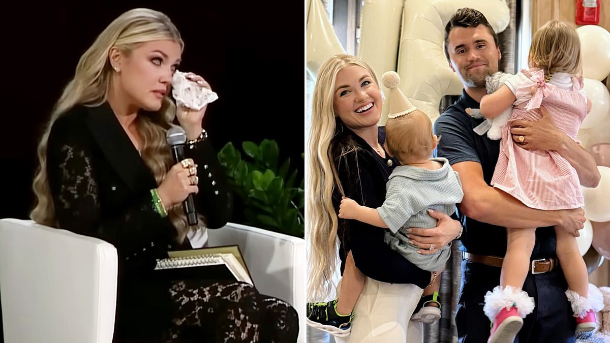 Erika Kirk, the widow of conservative activist Charlie Kirk, tearfully revealed how she had been ‘praying to God’ she was pregnant when her husband was shot and killed in September