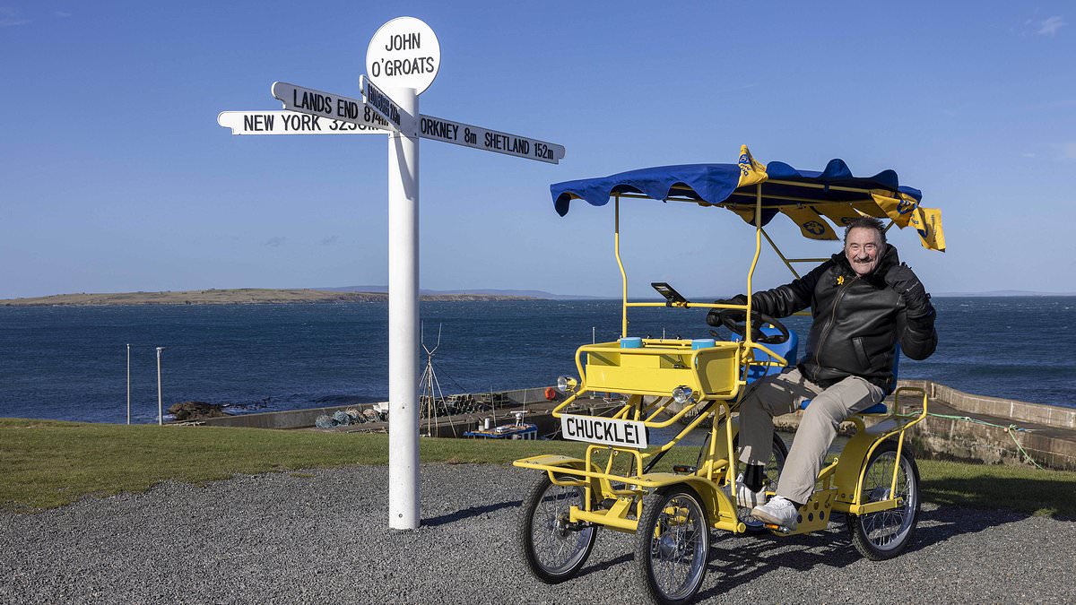 Elliott, better known as one half of the Chuckle Brothers, took part in Marie Curie’s Great Daffodil Appeal fundraiser – travelling from John O’Groats to Land’s End