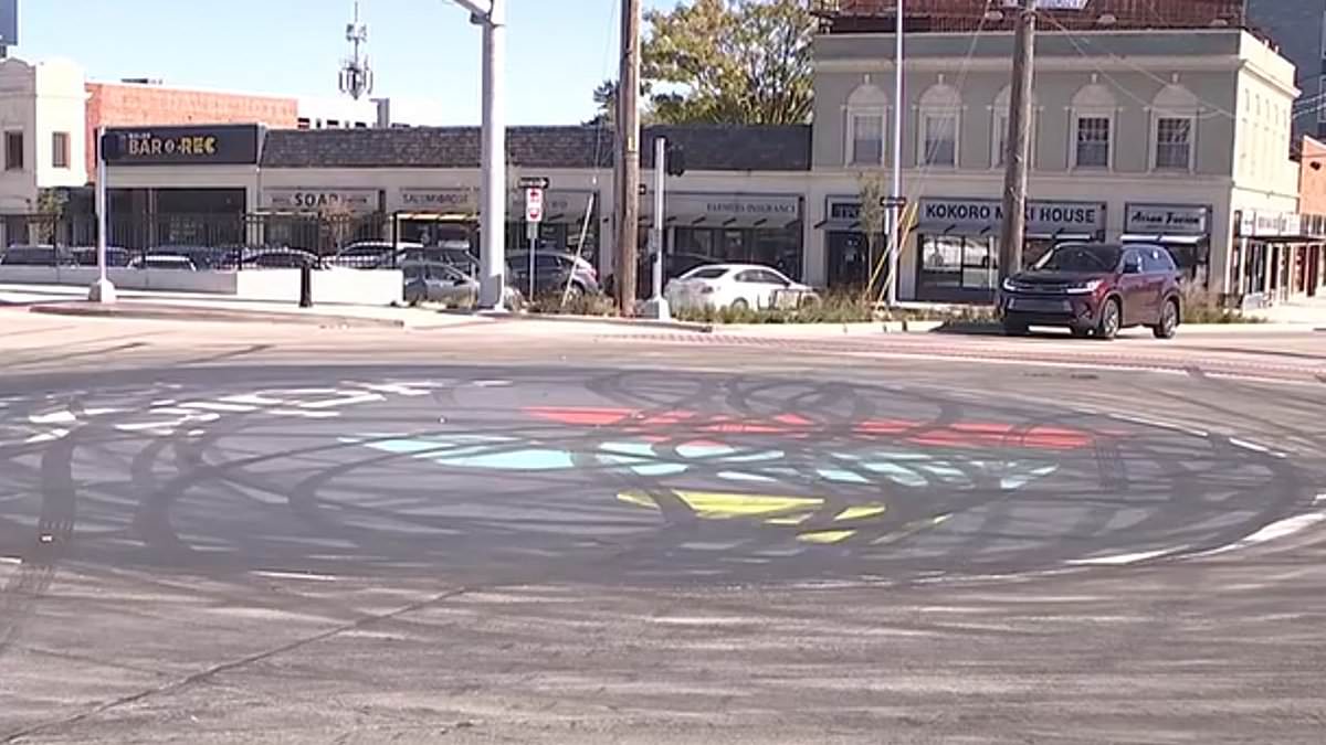 The mural in the center of Kansas City was covered in tire marks after the street racing incident