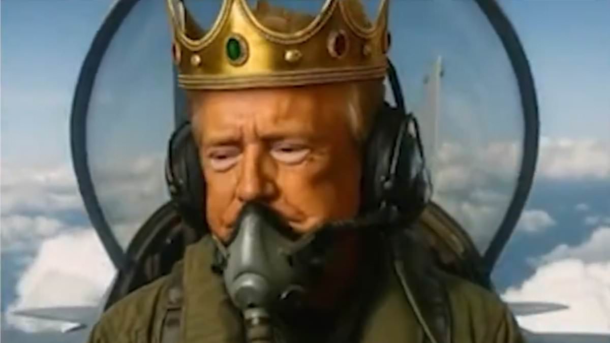 In a brief 19-second video shared on social media, a US fighter jet branded with the phrase ‘King Trump’ takes to the skies, piloted by a crown-adorned US President. The video features the jet releasing what looks like waste over a group of protesters demonstrating against Trump.