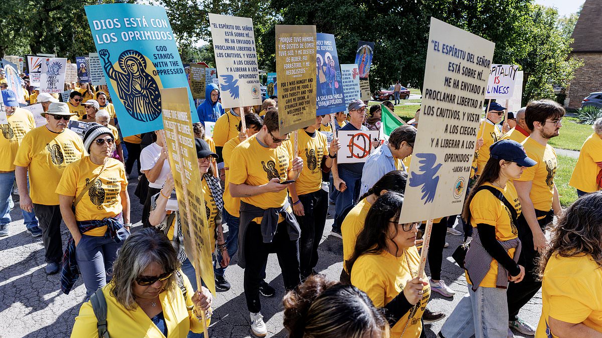 Hundreds of activists, called by the Coalition Espirituality and Public Leadership, attended a demonstration outside the ICE detention facility in Broadview, Illinois, on Saturday.