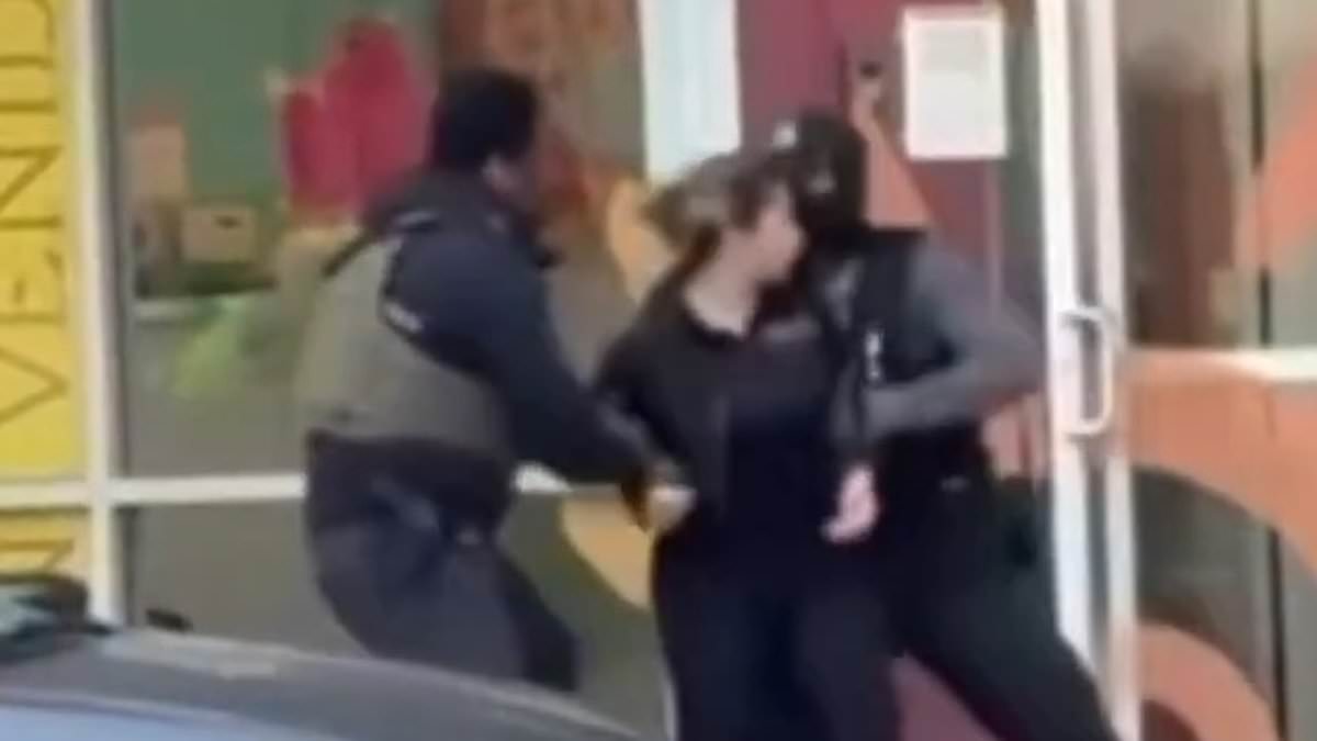 After being escorted from the school, the woman was taken to a car where she was made to stand with her hands behind her back, although she was not handcuffed. A federal agent held her arm as she was led away, eventually being transported in an unmarked DHS vehicle.