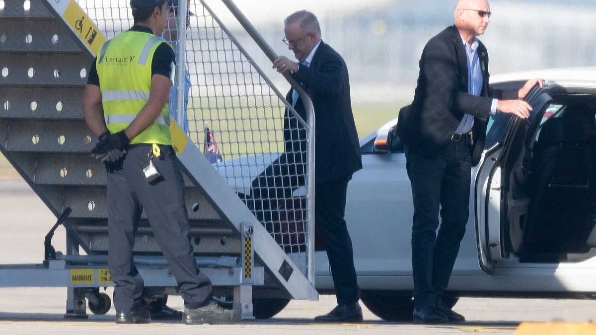 Anthony Albanese (pictured) boarding his flight to Singapore on Thursday morning