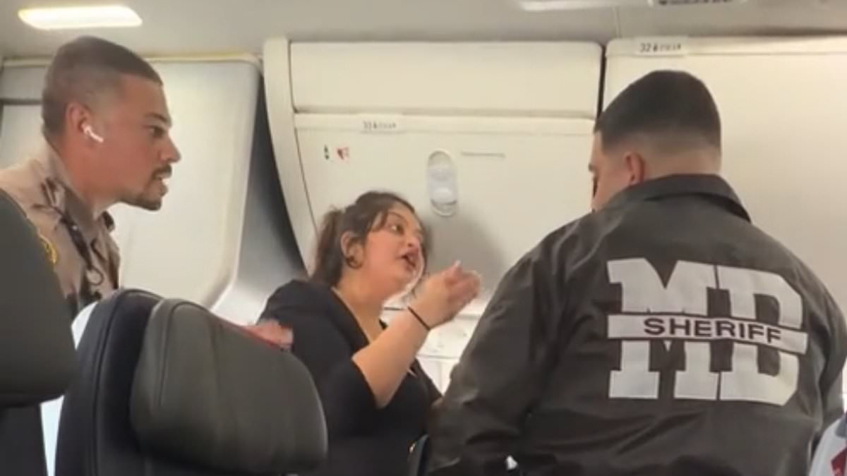 The sheriffs eventually got her to gather her belongings and escort her off the plane.
