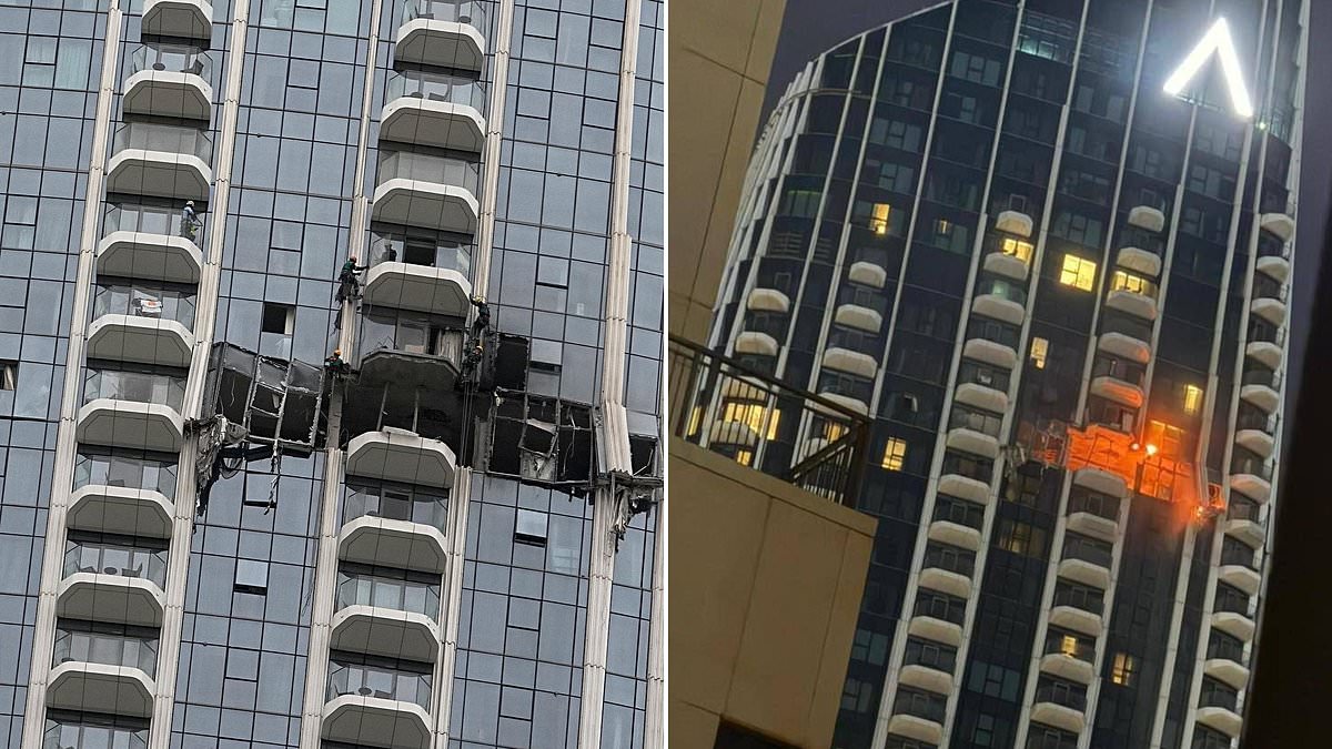 On Thursday morning a high-rise building in Creek Harbour, Dubai, was pictured with a large hole after a drone strike