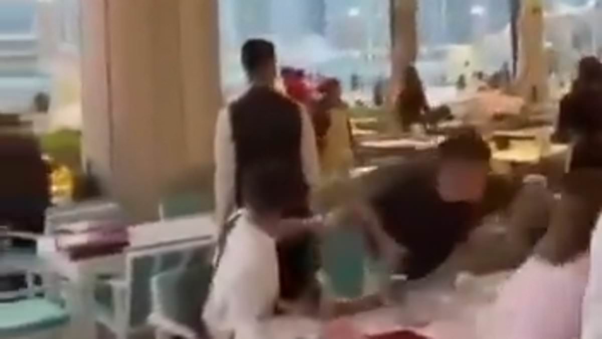 In one video circulating on social media, diners at a hotel restaurant can be seen suddenly jumping up from their tables and running for cover after a loud boom echoed through the area.
