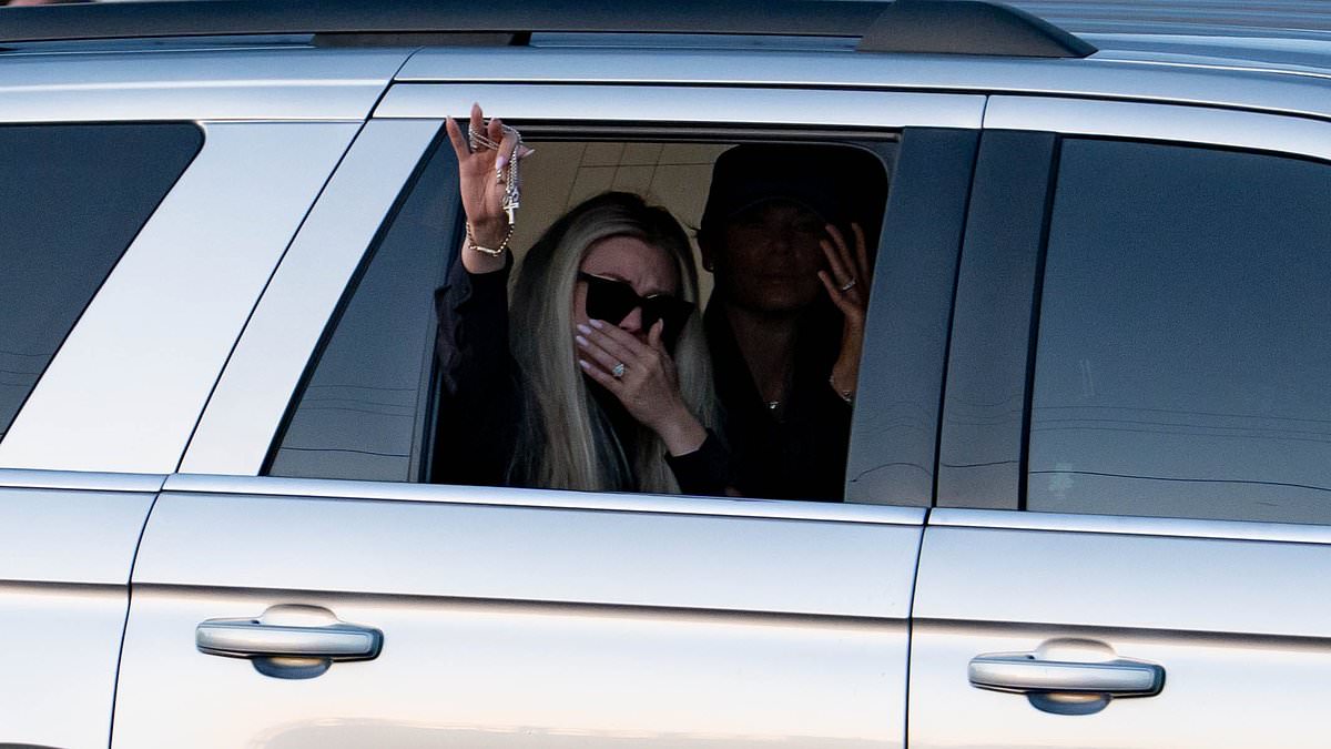 Erika Kirk waved to the supporters from an SUV on Thursday evening, fighting back tears and holding a rosary in her hand, as her husband's remains were taken to an Arizona chapel