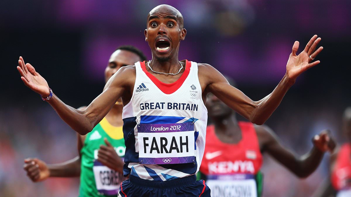 Sir Mo Farah wins gold for Great Britain at the men’s 5,000-metre race in the 2012 London Olympics