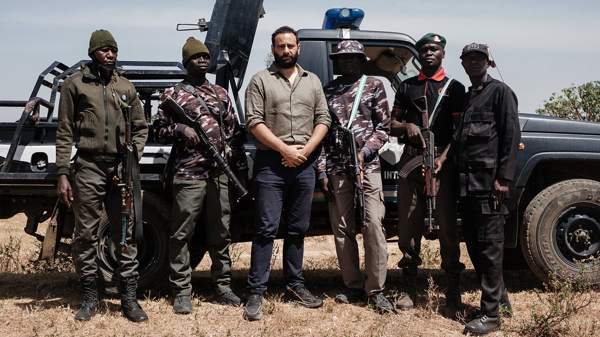 David Patrikarakos, centre, with his security escort in Gwet, in the Plateau State of Nigeria
