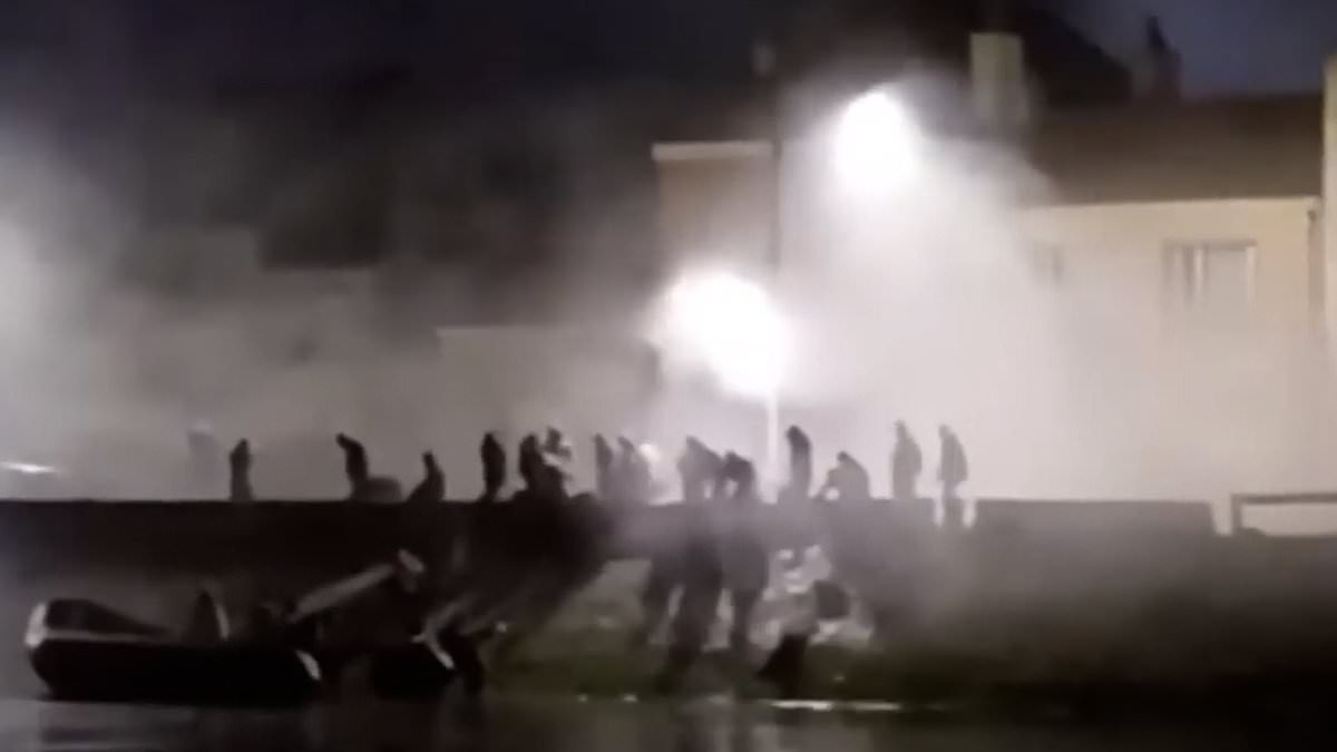 Police fired tear gas at the migrants, who can be heard shouting in the video footage shared by GB News