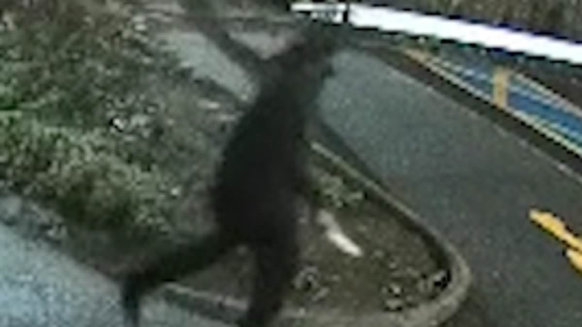 The black-clad man then vaulted a fence before continuing to walk on while carrying a blade