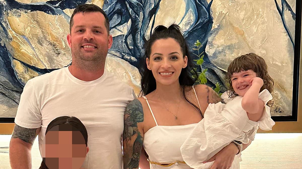 Christopher Scholtes (left) and his wife Dr Erika Scholtes, holding Parker in her arms, along with their two older daughters