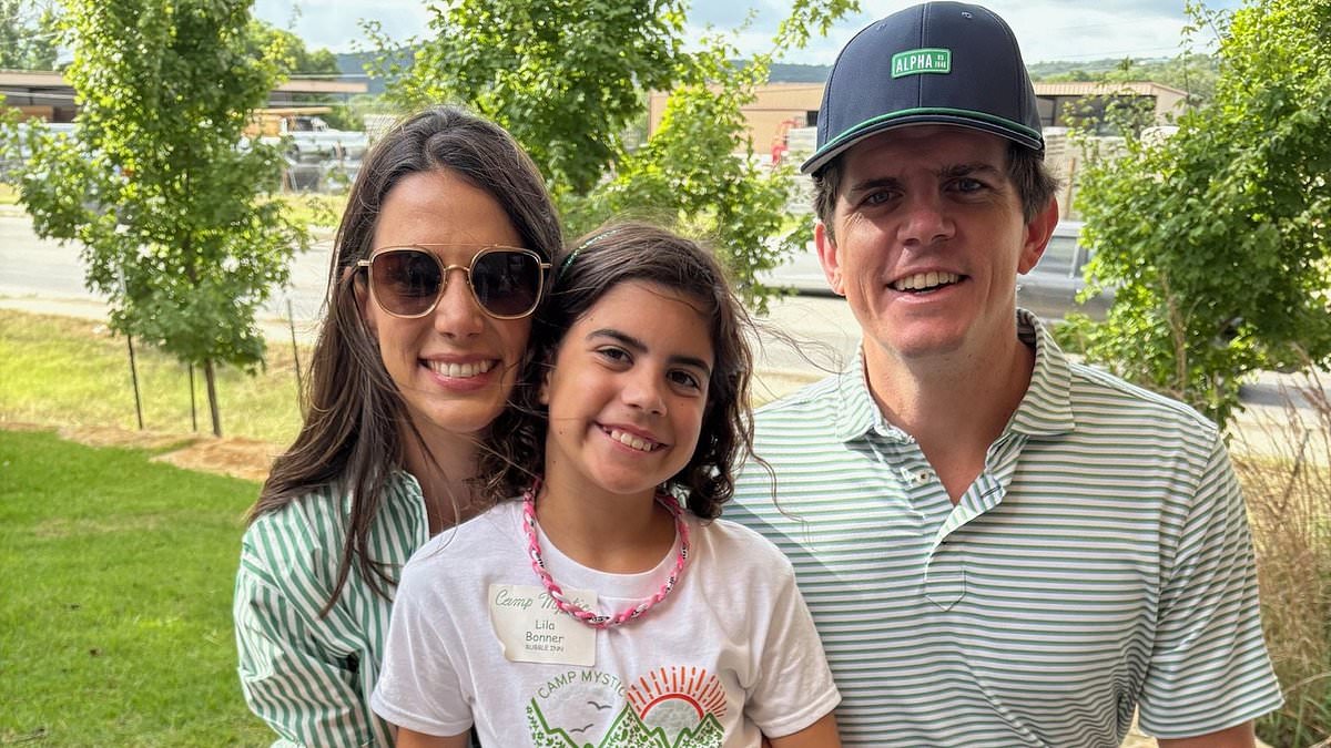 Nine-year-old Lila Bonner – pictured with parents Blake and Caitlin Bonner – was among 27 girls who died in the Camp Mystic floods in Hunt, Texas, last July