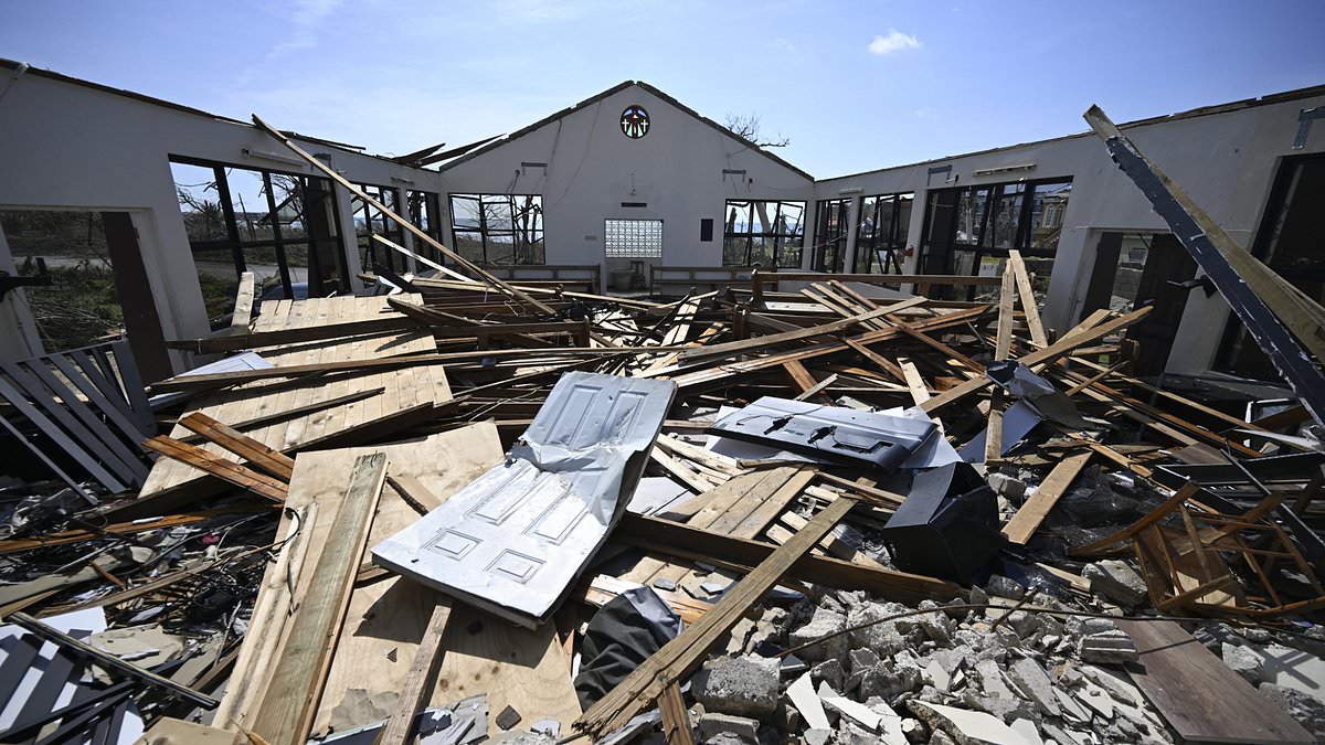 Looting has erupted in Jamaica after Hurricane Melissa ripped through the Caribbean, leaving towns in ruins and thousands without food, water, or power. Pictured: The destroyed Whitehouse Seventh-day Adventist Church in Westmoreland, which was used as a shelter during the passage of Hurricane Melissa, is seen in the aftermath of the hurricane