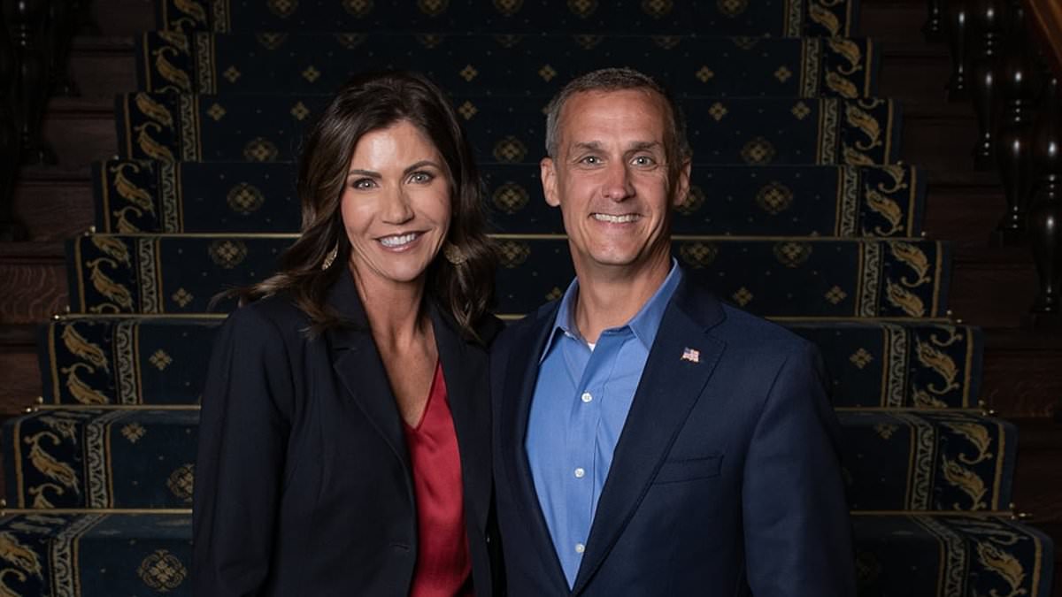 One source described Noem (left) and Lewandowski’s (right) tactics to push out Scott as ‘evil’. Another said that the feud stems from Scott thinking Lewandowski’s leadership is irrelevant because his special government employee status has expired but he’s remained in the role