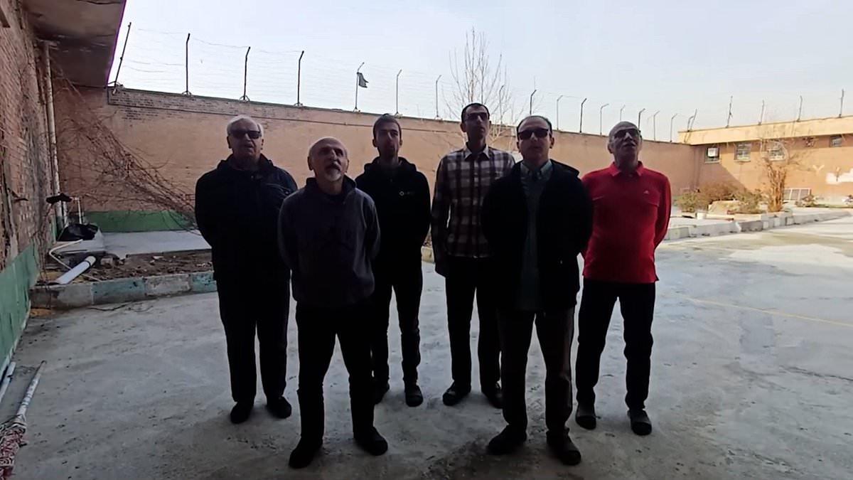 The six political prisoners were identified as (from left) Vahid Baniamerian, Babak Alipour, Abolhassan Montazer, Pouya Ghobadi, Akbar Daneshvarkar and Mohammad Taghavi