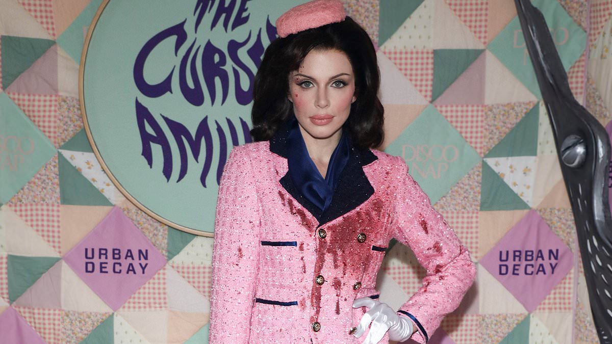 If that wasn’t shocking enough, the 34-year-old added a gruesome twist: fake blood splattered across her pink suit and pillbox hat