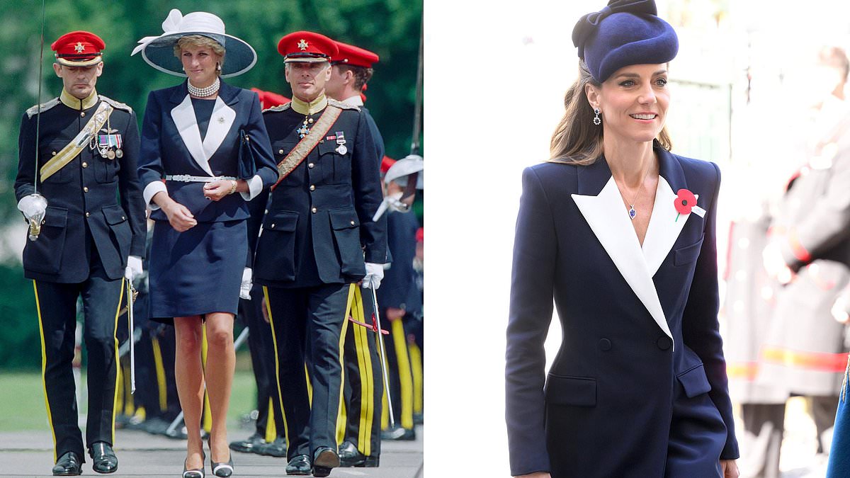Kate’s look was rather reminiscent of Diana’s style when she stepped out in 1995 to present new colours to the Light Dragoon Guards Regiment