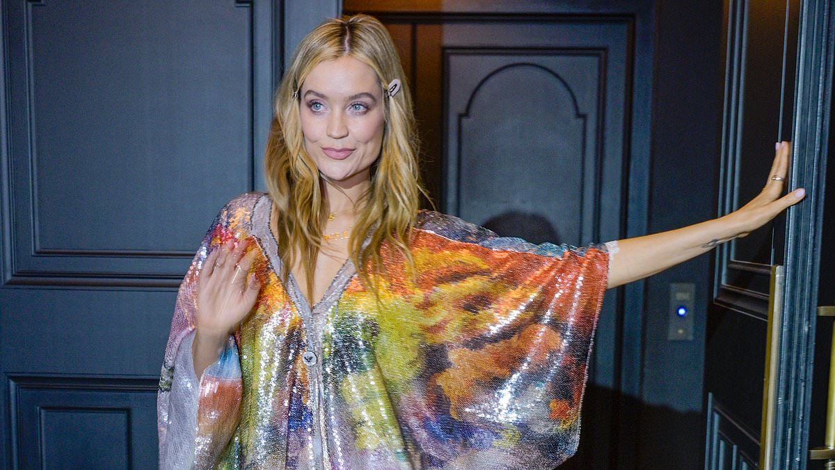 Laura stunned in a dramatic, floor-length kaftan-style sequined gown that shimmered with the flashes of the cameras