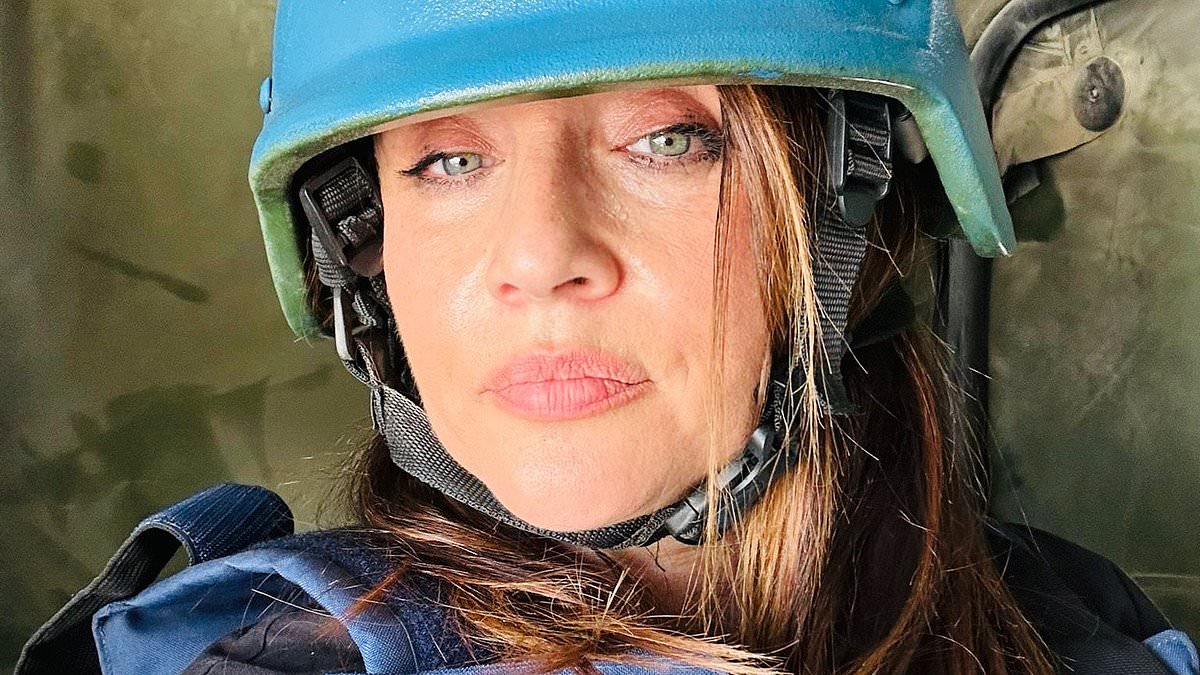 We are lowered back down the apartment and move swiftly back into the APC which rumbles out of Gaza City. Pictured: Reporter Natalie Lisbona on the way back from Gaza City on Friday, October 3, 2025