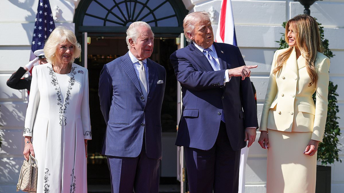 President Donald Trump and First Lady Melania Trump (right) welcomed King Charles and Queen Camilla (left) to the White House on Monday as the British royals kicked off their four-day trip to the United States to mark the country's 250th birthday