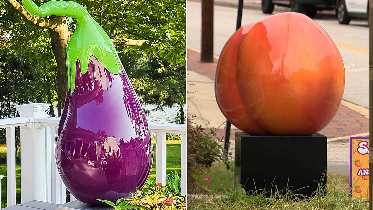 Maryland town erupts over 'suggestive' peach and eggplant statues