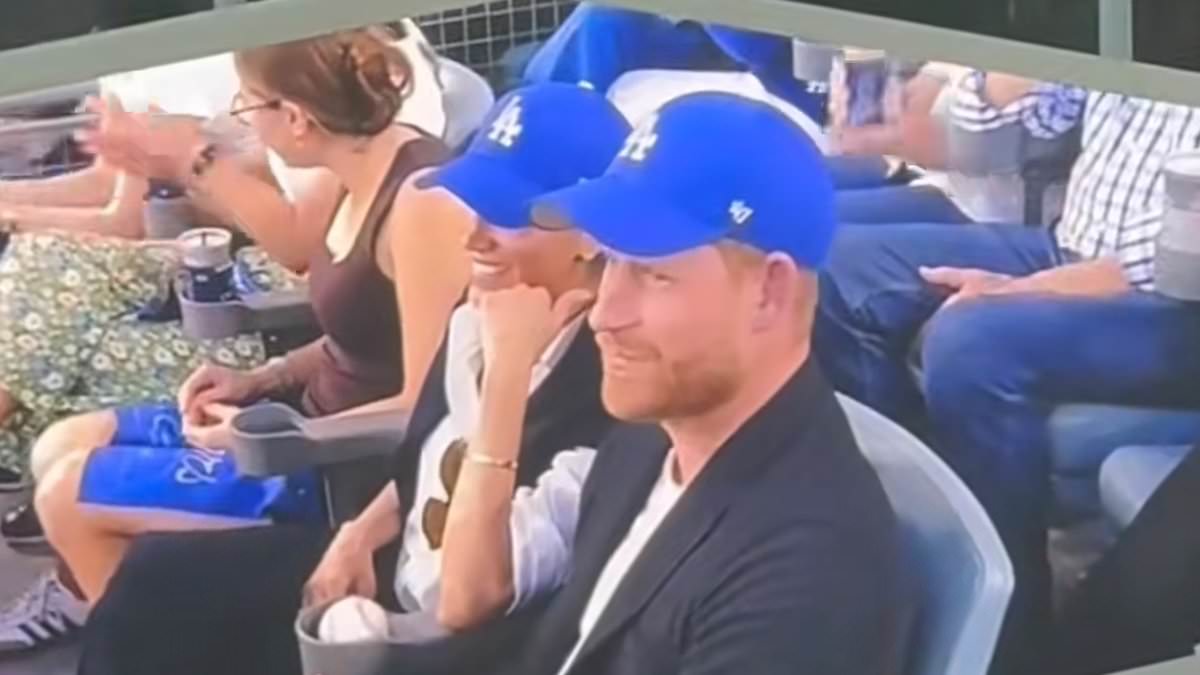 The Duke and Duchess of Sussex were enjoying a night out at Dodgers Stadium in Los Angeles on Tuesday when they appeared on the big screen from their prime seats.