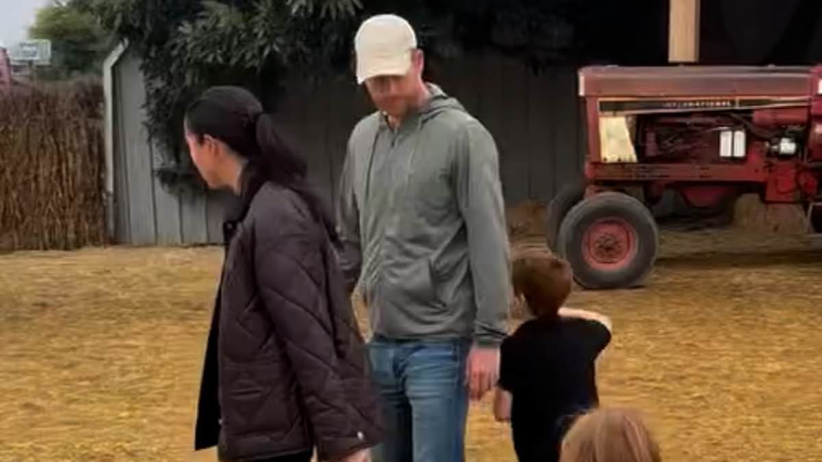 Prince Harry opted for a more casual ensemble, sporting jeans, a hoodie, and a baseball cap as he strolled through the pumpkin-laden fields with his family.
