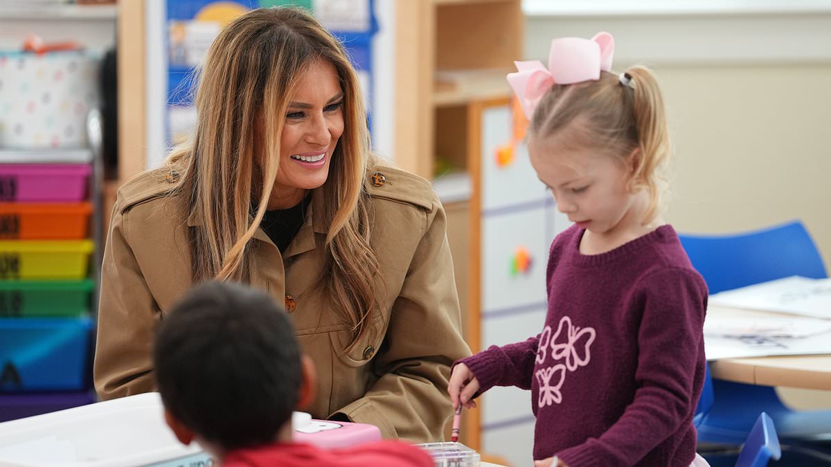 U.S. first lady Melania Trump and second lady Usha Vance visit an elementary school