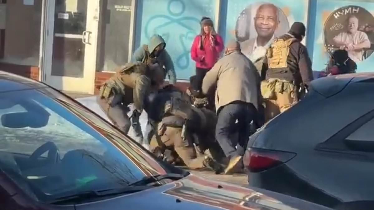 A protester appeared to be detained after an ICE agent reportedly shot a man several times in Minneapolis