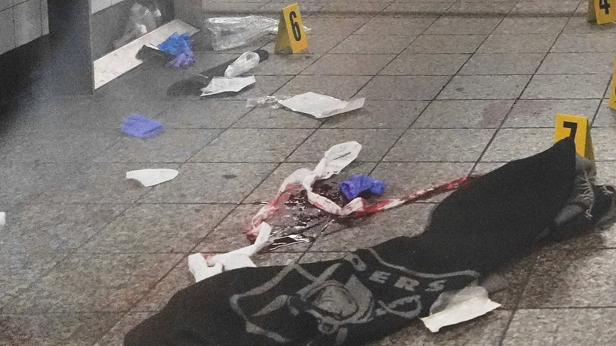 Blood and trash were seen left on the platform after the attack