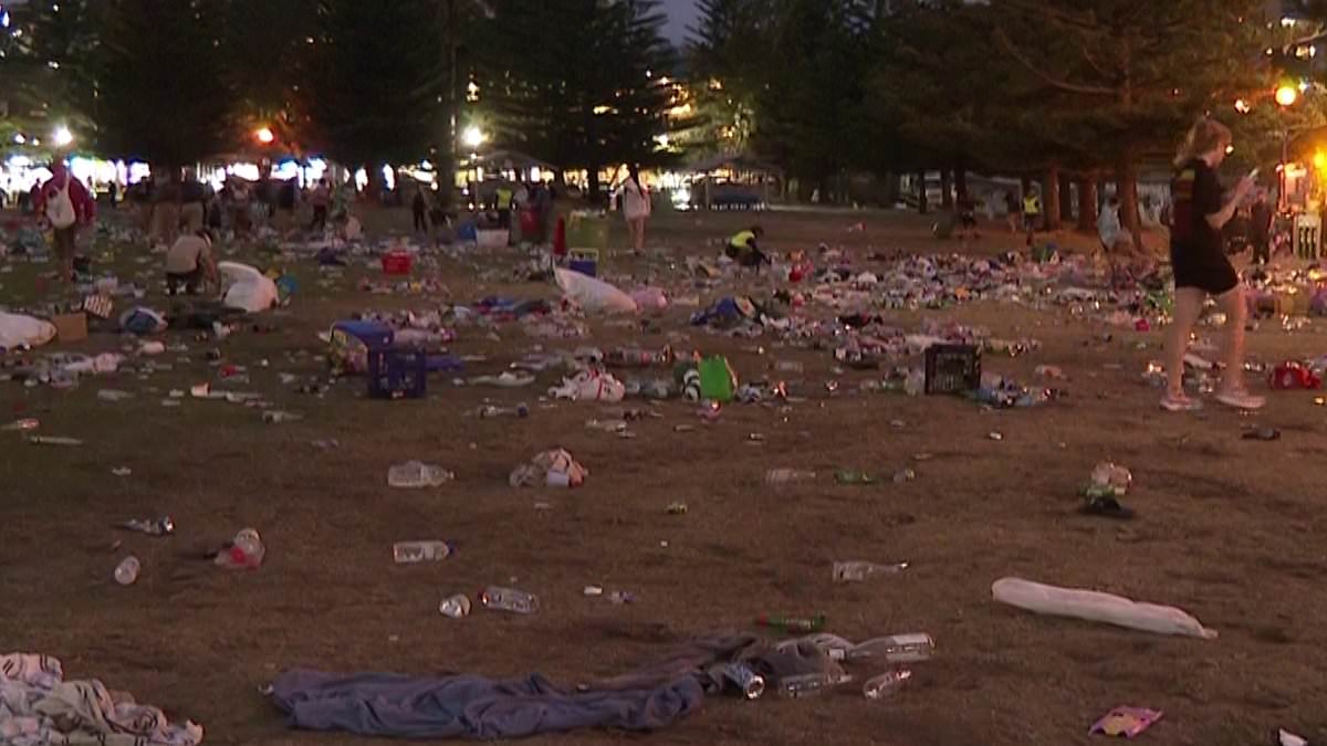 Rubbish is seen on the ground at Coogee Beach as festivities get into full-swing