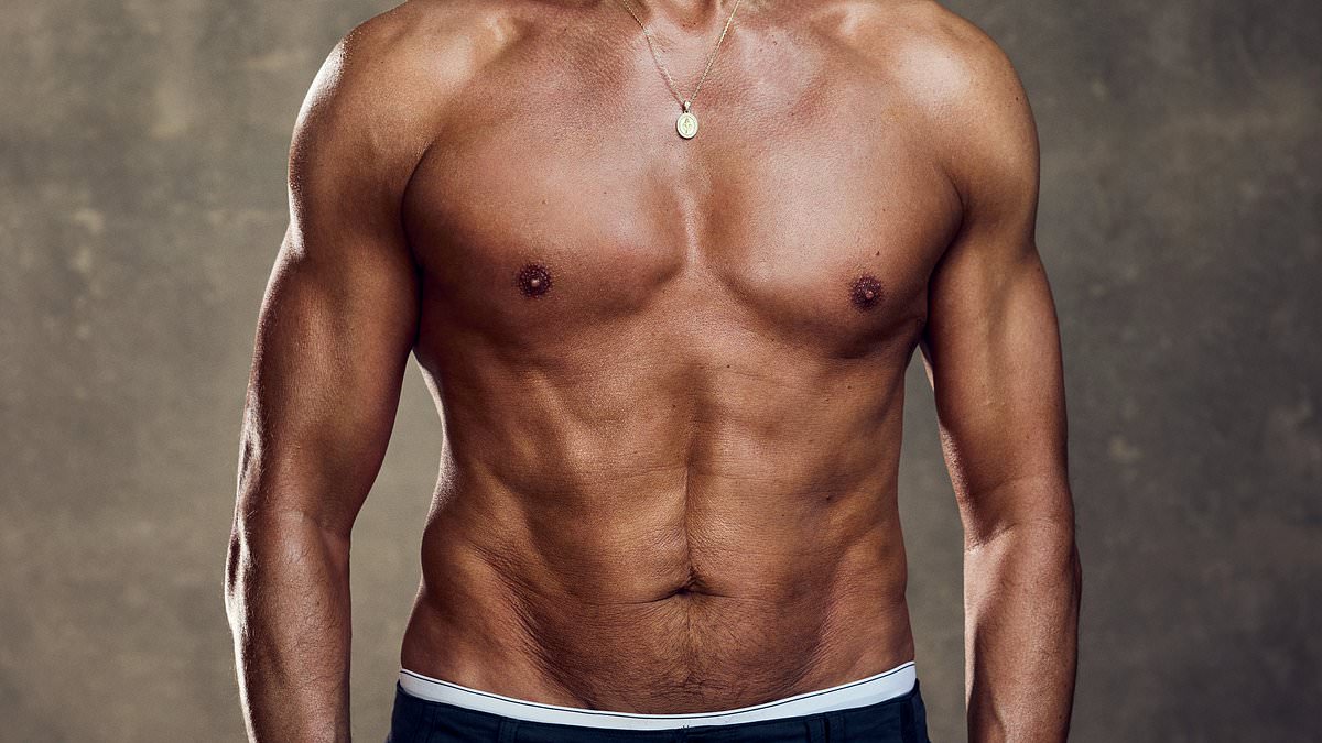 In the accompanying photoshoot, he wore a pair of black jogging bottoms and posed with a 20kg plate in hopes to show ‘other blokes it’s attainable’