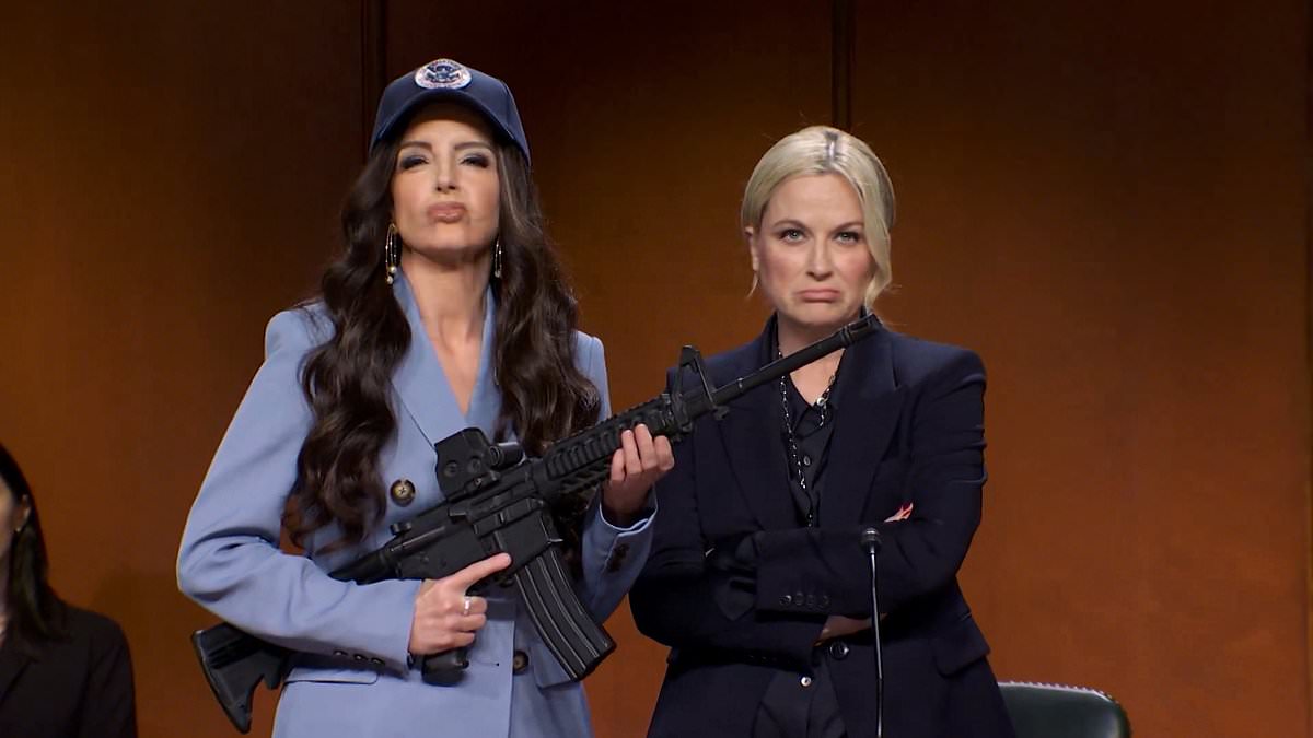 The sketch spoofed Bondi’s fiery Senate hearing appearance, with Poehler channeling Bondi beside Fey’s over-the-top ‘ICE influencer.’