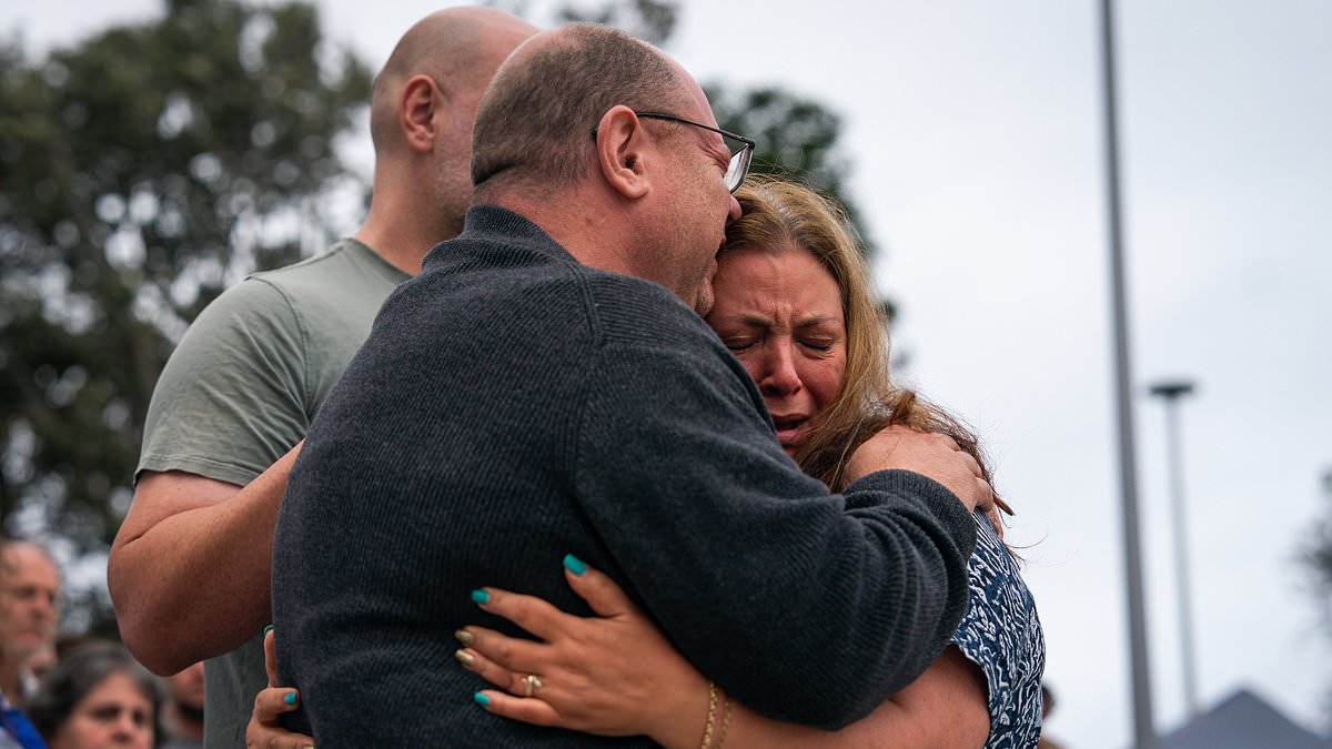 Pictured, Matilda’s grandparents grieved at the floral memorial