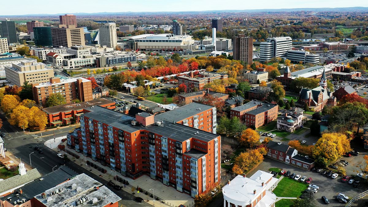 Connecticut is struggling to find people to run for office because they are afraid of political violence and scrutiny. (Pictured: Aerial image of Hartford)