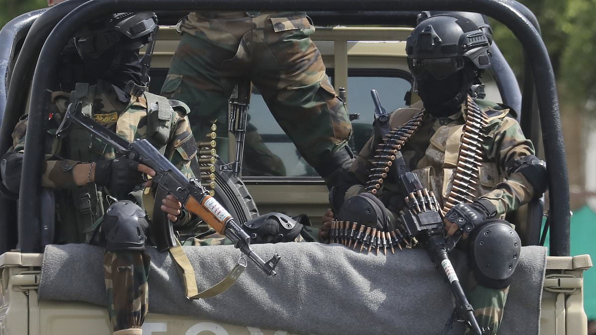 The Houthis, a Yemeni militant group that is armed and funded by Iran, have already threatened to step in (Pictured: Armed Huthis soldiers on patrol in June 2025)
