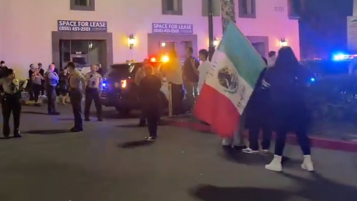 A large crowd of anti-ICE protestors surrounded a restaurant in Lakewood, a city in Los Angeles, on Wednesday night after hearing there were apparently federal agents dining inside