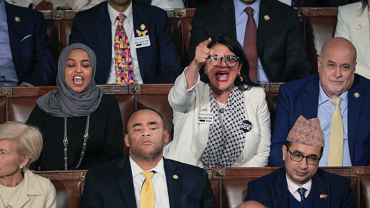 In a dramatic moment during Donald Trump’s State of the Union address, Rashida Tlaib was caught on camera chanting “KKK” at Republican lawmakers, who were enthusiastically cheering “USA.” This new footage highlights the tension that erupted in the House Chamber on Tuesday night, with the far-left Democratic representative’s actions leading to heated exchanges involving the President and other lawmakers.