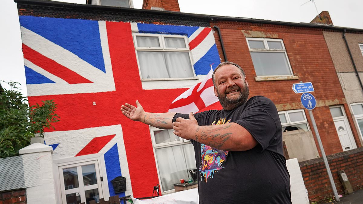 Simon Brocklehurst dedicated 12 hours to covering his four-bedroom terraced home with the massive flag, causing concerns among nearby residents that this might cause property values on their street to decline.