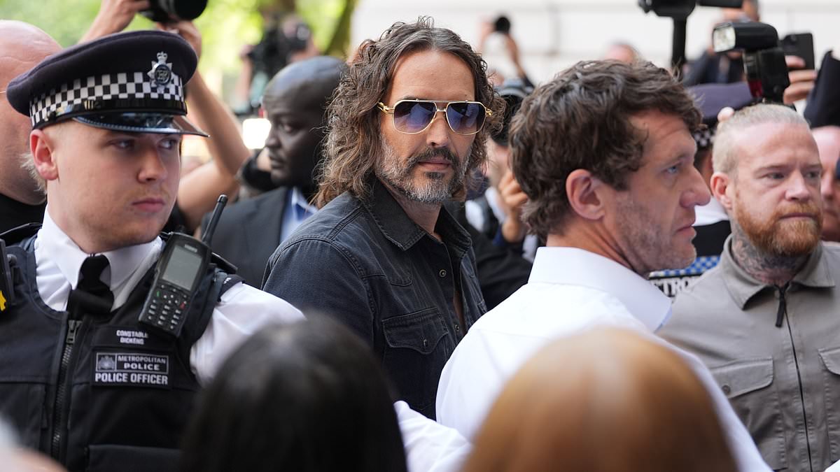 Russell Brand is pictured leaving Southwark Crown Court in May 2025 after he pleaded not guilty to five charges relating to alleged sex attacks on four women